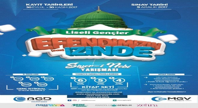 AGD Erzurum Şubesi tarafından Erzurum’da da yapılacak yarışmaya Liseli, İmam-Hatipli- Ortaokullu gençler internet üzerinden http://www.efendimizinizinde.com/ adresine girerek başvuru yapabiliyor.