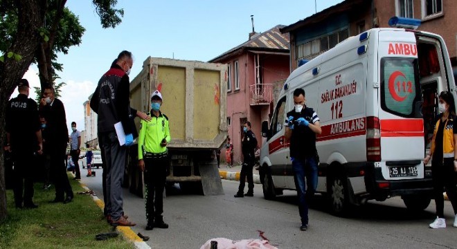 Edinilen bilgilere göre olay saat 11.30 sıralarında Erzurum’un Yakutiye ilçesi Gölbaşı Semtinde meydana geldi. Gürkan Z.(10) isimli çocuk evlerinin önünde bisiklet sürdüğü sırada ana yol üzerine çıktı. O sırada aynı istikametten gelen 25 EJ 026 plakalı kum yüklü kamyonun altında kalarak feci şekilde can verdi. Küçük çocuğun yakınları olayın ardından kamyon şoförüne saldırarak darp etmeye kalkışınca polis ekipleri kamyon şoförünü gözaltına aldı.