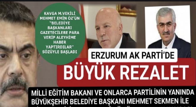 Ramazan Bayramı için Erzurum’a gelen Milli Eğitim Bakanı Yusuf Tekin’in de bulunduğu İl Binasında Milletvekili Mehmet Emin Öz’ün, “Bazı belediye başkanları para vererek aleyhime yazılar yazdırdılar” demesi üzerine sert karşılık verdiği iddia edilen Mehmet Sekmen, “Doğru konuş, kim senin aleyhine yazı yazdırmış. Kimin kimin aleyhine yazılar yazdırdıklarını biz biliyoruz” çıkışı üzerine tartışmanın büyüdüğü ileri sürüldü.