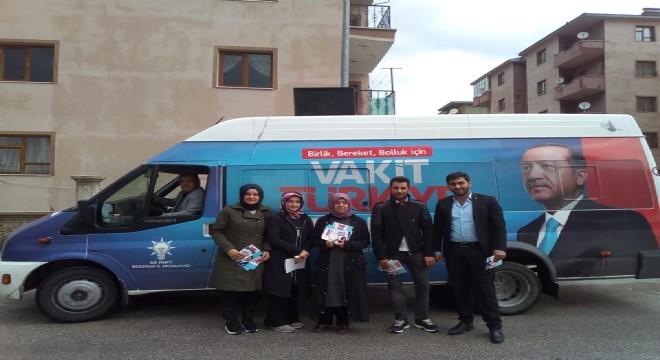 AK gençlerden sandık bazlı çalışma  Gece geç saatlere kadar yaptıkları organizasyonlarla göz dolduran AK Aziziye Gençleri sandık bazlı çalışmalardan uzun soluklu sohbetlere varıncaya kadar birçok alanda varlık gösteriyorlar. Aziziye’nin şu ana kadar Saltuklu ve Selçuklu mahallelerinde 8 binin üzerinde haneye giderek çalışma yapan Gençlik kolları üçerli gruplar halinde yağmur çamur dinlemiyor. Olumsuz hava şartlarına rağmen gruplar halinde çalışmalarını sürdüren Gençlik kolları son olarak Ilıca mahallesinde de aynı çalışmalarını devam ettirmeyi hedefliyorlar.