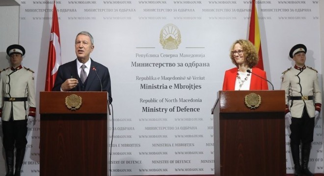 Milli Savunma Bakanı Hulusi Akar, Üsküp’te, Kuzey Makedonyalı mevkidaşı Radmila Shekerinska ile düzenlediği ortak basın toplantısında, "Önümüzdeki dönemde Kuzey Makedonya’nın Avrupa Atlantik bağlarının güçlenmesini her bakımdan arzu ediyoruz" dedi.