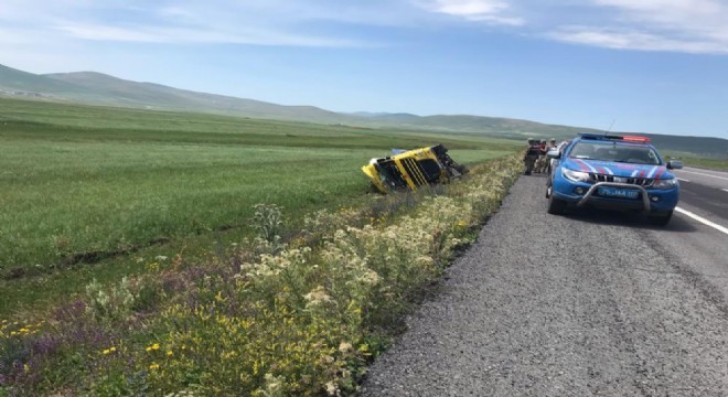 Ardahan-Kars karayolunda tırın şarampole devrildiği kazada 1 kişi yaralandı.