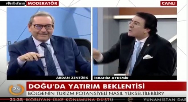 Ulusal Yayın kanalı TV 24’te Ardan Zentürk’ün sunduğu Moderatör Gece Programına konuk olan Aydemir, Cazibe Merkezi Programı kapsamında ‘Doğu’da Yatırım Beklentisi’ni irdeledi. Duayen gazeteci Zentürk’ün sorularını cevaplandıran Milletvekili Aydemir, Cazibe Merkezi uygulamasının bölge ekonomisine getirilerini, bölgedeki tarım, sanayi ve turizm altyapısını anlattı.