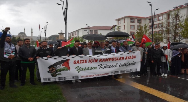 Bitlis Eren Üniversitesi (BEÜ) öğrencileri, Filistin için 10 günlük oturma eylemi başlattı.Rahva Yerleşkesindeki Memduh Eren Camisi’nde öğlen namazı sonrası BEÜ İnsani Değerler Kulübü öncülüğünde bir araya gelen grup, kampüs içerisinde pankartlarla yürüyüş yaptı. Sloganlarla yürüyen grup daha sonra basın açıklaması yaptı. Grup adına basın açıklamasını okuyan Eren Üniversitesi (BEÜ) İnsani Değerler Kulübü Başkanı Muhammed Beyazalma, 10 gün sürecek oturma eylemi ile Filistin’e destek vereceklerini söyledi. Beyazalma, 7 Ekim Aksa Tufanı sonrasında gelişen olaylar, insanlık tarihinin en vahşi katliamlarından birinin yanında yine insanlık tarihinin en şerefli ve sebatkâr direnişlerinden birini tüm dünyanın gözleri önüne serdiğini söyledi. Beyazalma, “Tarihteki tüm önemli dönüm noktalarında olduğu gibi bugün de Gazze'de süregelen katliam ve direniş, doğruyu yanlıştan, haklıyı zalimden, izzeti zilletten ayırt eden bir Furkan olarak karşımızda duruyor. Siyonistler, Filistin'de sadece bir halkı değil aynı zamanda insani tüm ilke ve değerleri sistematik bir şekilde katlediyor. Batılı devletler ise bu katliama göz yummanın da ötesinde İsrail'i açıktan desteklemekten çekinmiyor. Katil devleti soykırım silahlarıyla teçhiz eden ABD, Gazze'deki mezalimin bizatihi faili konumunda olmayı sürdürüyor. Emperyalist ABD, Gazzeli mücahitlerin zillete uğrattığı Siyonistleri koruyup kollarken, son günlerde ABD'nin çeşitli eyaletlerindeki üniversitelerde Siyonizm karşıtı gösterilerin yoğunlaştığına şahitlik ediyoruz. Harvard'dan Yale'e, California'dan Texas'a kadar Amerika'nın önde gelen 25'e yakın üniversitesinde devam eden destek eylemlerinde bir taraftan Siyonist vahşet lanetlenirken diğer taraftan Amerika'nın İsrail'e verdiği destek protesto ediliyor. Kampüslere adeta Filistin kampları kuran öğrencilere akademisyenler de destek veriyor. Gazze'de yakılan direniş meşalesinin aydınlığında dünya, zulmün membağı ABD'de zalim yöneticilerine hakkı çekinmeden haykıran binlerce vicdan sahibine şahitlik ediyor. Bizler, üniversite öğrencileri olarak Columbia Üniversitesinde başlayarak Amerika'da dalga dalga yayılan Filistin eylemlerine Türkiye'den selam gönderiyoruz” dedi.Açıklamanın ardından kampus içerisinde oluşturulan alanlarda 10 günlük oturma eylemi başlatıldı. Yürüyüş ve basın açıklamasına BEÜ öğretim üyeleri ve öğrenciler katıldı.