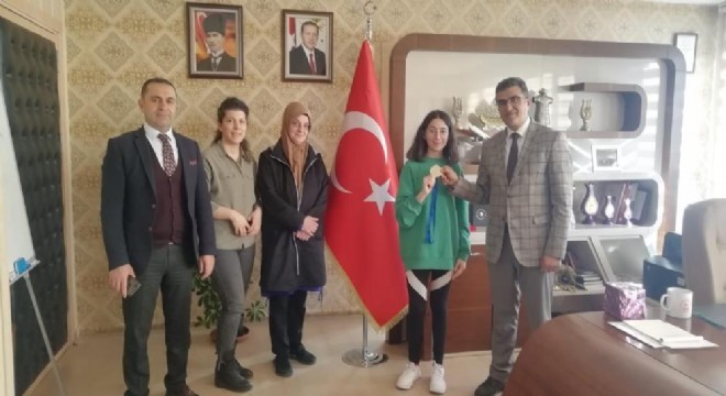 Ziyarette ASH il Müdür Yardımcısı Tamer Ekinci de hazır bulundu. İlbaş, başarılı sporcuya hediye verdi.