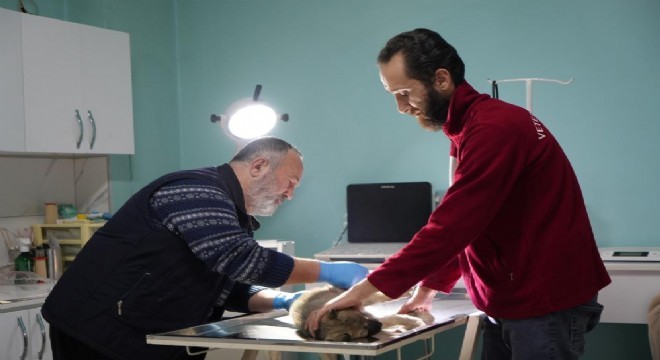 Kop Dağı’nda aracın çarpması sonucu arka ayakları tutmayan yavru köpeğe, ...