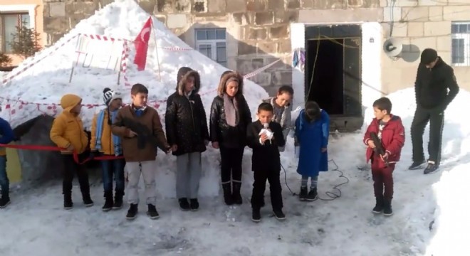 Ardahan’da çocuklar kardan Ilgar Dağı tüneli yaparak kendi aralarında düzenledikleri temsili törenle hizmete açtılar