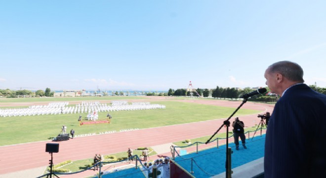 Konuşmasında, Dün Kara Harp Okulu'nda cami açılışı ve diploma törenine katıldığını ve okul birinciliğini bir kız öğrencinin aldığını kaydeden Cumhurbaşkanı Erdoğan, Deniz Harp Okulu'nun birincisinin de bir kız öğrenci olduğunu söyledi.