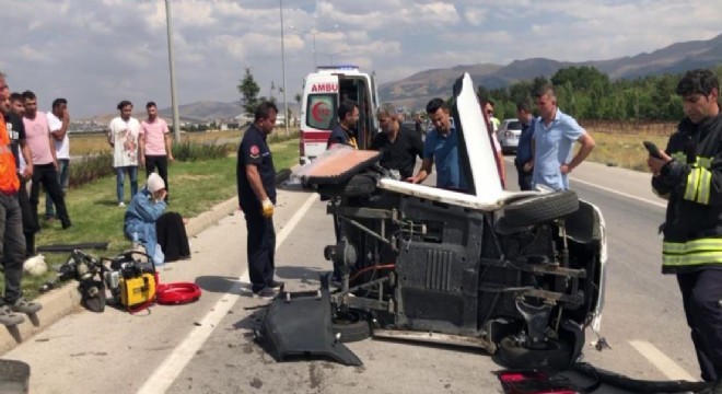 Erzurum’da sürücüsünün direksiyon hakimiyetini kaybettiği otomobil bir araca çarpıp takla attı. Kazada araç içerisinde sıkışan 3 kişi itfaiye ekiplerince çıkarıldı.