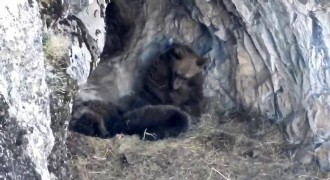 Kış uykusuna yatmaya hazırlanan ayı ailesi görüntülendi
