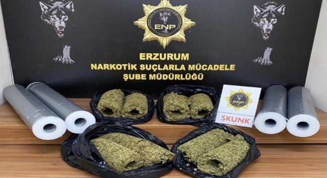 Erzurum Emniyet Müdürlüğü Narkotik Suçlarla Mücadele Şube Müdürlüğü ekiplerince şüphe üzerine bir araç durduruldu. Ekipler tarafından araçta yapılan aramada 4 parça duvar kağıdı rulosuna gizlenmiş şekilde 11 kilo 400 gram skunk maddesi ele geçirildi.