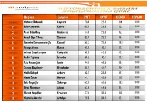Ayrıca Topbaş'a "hayır" oranının 1.5 puanla "evet" oranından daha yüksek olduğu dikkat çekti.