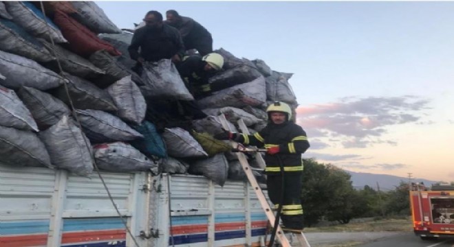 Erzincan-Erzurum karayolunda seyir halindeki mangal kömürü yüklü tırda yangın çıktı. Yangın itfaiye tarafından söndürülürken, kömürlerde maddi hasar meydana geldi.