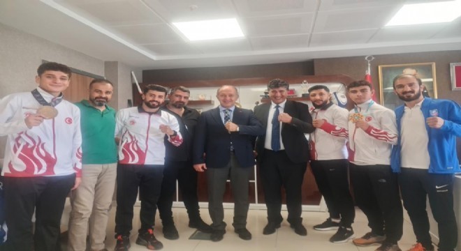 Dünya Şampiyonasından madalya ile dönen sporcuları ve antrenörler Emre Şahin’le, Cebrail Gençoğlu’nu kutlayan Gençlik ve Spor İl Müdürü Levent Çakmur, destekleri için Erzurum Büyükşehir Belediye Başkanı Mehmet Sekmen’e teşekkür etti. Çakmur, “Başkan Sekmen ve Spor A.Ş. Genel Müdürümüz Ahmet Dal’ın spora ve sporcuyla destek vermesi bizleri mutlu ediyor. İnanıyorum ki, sporcularımız bundan sonra kürsünün en üst basamağında olacaklar” dedi.