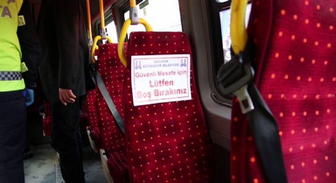 İçişleri Bakanlığının geçtiğimiz hafta yayımladığı Korona virüs Genelgesi ile toplu ulaşım araçlarına kapasitelerinin yüzde 50’sinden fazla yolcu taşımasına yasak getirildi. Yasağın ardından Erzurum’da ki toplu taşıma araçlarına uyarılar asıldı. Her iki koltuktan birine asılan uyarılarda “Güvenli mesafe için lütfen boş bırakınız” yazısı yer aldı.