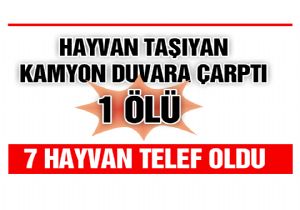 Erzurum'da büyükbaş hayvan taşıyan bir kamyon seyir halindeyken duvara çarptı. Kazada kamyonda yolcu olarak bulunan bir kişi öldü, 7 büyükbaş hayvan telef oldu.
