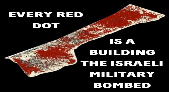Siyonizm karşıtı örgüt Jewish Voice for Peace (Barış için Yahudi Sesi), BM uydu verilerini kullanarak İsrail'in 7 Ekim'den bu yana Gazze Şeridi'ne attığı 70 binden fazla bombanın haritasını çıkardı. Yapılan paylaşımda, "İsrail ordusu Gazze'nin neredeyse her santimetresini ABD yapımı bombalarla vurdu. İsrail güçleri son 10 ayda Gazze'ye 70 binden fazla bomba attı. Gazze'de İsrail bombardımanının dokunmadığı yer neredeyse kalmadı. Bu harita, İsrail'in Gazze'deki yıkımının büyük boyutunu ortaya koyuyor. Her kırmızı nokta, İsrail kuvvetlerinin 7 Ekim 2023-6 Temmuz 2024 arasında bombaladığı bir binayı gösteriyor. Geçtiğimiz 10 ayda İsrail ordusunun okullar, mülteci kampları, hastaneler, camiler, kiliseler ve belirlenmiş insani yardım bölgeleri dahil olmak üzere Gazze'deki tüm yaşamı kasıtlı olarak hedef aldığına tanık olduk" denildi.