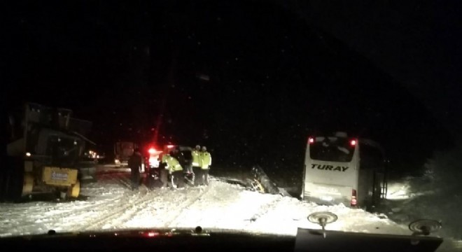 Erzincan-Sivas karayolunda gece saatlerinde kar yağışı etkili oldu. Kar temizliği yapan iş makinesine arkadan çarpan yolcu otobüsü yoldan çıktı. Kazada 17 kişi hafif şekilde yaralandı.