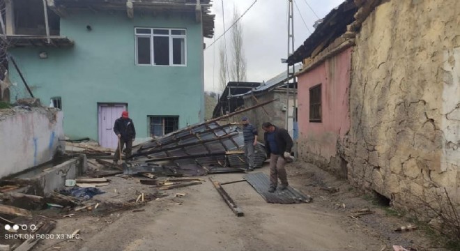 İspir İlçesi Madenköprü Elmalı mahallesinde etkili olan fırtına çatıları uçurdu.