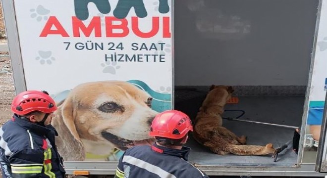 Erzurum'da asansör boşluğunda mahsur kalan yavru köpekler ve annesi itfaiyenin çalışması sonucu kurtarıldı.