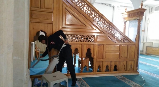 İzci ve liderleri caminin minber, mihrap, kürsü ve camlarını silip temizlerken halı ve cami avlusunu süpürerek temizlik yaptı.