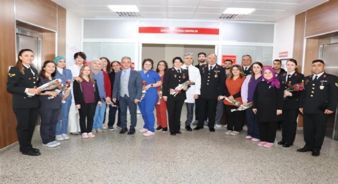 Jandarma heyeti tarafından, Hemşireler Günü önemi anısına tüm hemşirelere gül hediye edildi.