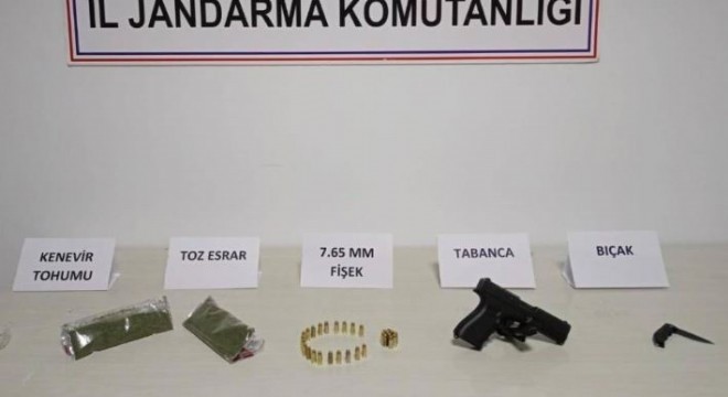 Bingöl’de jandarma ekiplerince düzenlenen operasyonlarda 7 kilo 548 gram toz esrar ile 2 adet ruhsatsız tabanca ele geçirildi. Arama kaydı bulunan 3 şüpheli de yakalandı.