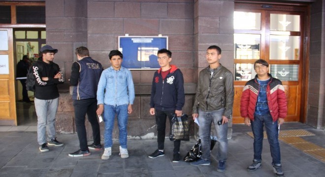 Düzensiz göç eden yabancı uyruklu şahıslar, Erzurum tren garında şüpheli hareketleri üzerine yakalandı. Kars istikametinden Erzincan istikametine gidecek olan trene binmek için istasyonda bekleyen 5 kişinin, Terörle Mücadele ekiplerince önce üzerleri arandı, sonra evrakları incelenerek göç idaresine götürüldü.