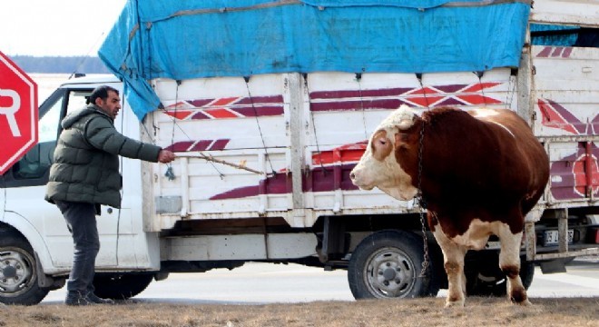 Erzurum’un Aziziye ilçesinde kesimhaneye götürülmek üzere kamyonete yüklenmeye çalışılan yaklaşık bir tonluk boğa sahibinin elinden kaçarak Erzurum’un en işlek yollarından birisi olan D-260 karayoluna çıktı. Yola çıkan boğa panikleyerek araçların arasında sağa sola çarparak kaçtı.