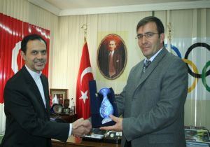 İran İslam Cumhuriyeti Başkonsolosu Rıza Kılıçhan, Gençlik ve Spor İl Müdürü Fatih Çintimar’ı ziyaret etti ve desteklerinden dolayı teşekkür etti.Kılıçhan, Çintimar’ın Erzurum’da göreve gelmesinin ardından Türkiye ile İran arasında ikili sportif faaliyetlerin arttığını ve bunda Çintimar’ın rolünün çok fazla olduğunu söyledi.