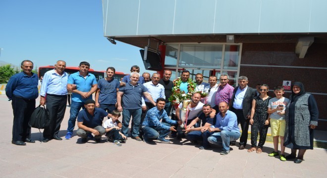 Erzurumlu güreşçiye Havalimanı’ndan Gençlik Hizmetleri ve Spor İl Müdürlüğü Spor Şube Müdürü Güngör Şenses, Büyükşehir Belediyesi Spor Müdürü Muzaffer Şahin ile Güreş İl Temsilcisi Baddal Alpkılıç, Kırkpınar Yağlı Güreşlerinde baş pehlivanlık mücadelelerinde üçüncü olan Hamza Köseoğlu’nun boynuna çiçek takarak tebrik ettiler. Havalimanı Nöbetçi Müdürlerinden Abubekir Özcan, babası Adnan Köseoğlu, İşadamı Ali Karataş, İsmail Hakkı Özkan ve Yücel Aksakal da, havalimanında milli güreşçiyi ilk kutlayanlar arasında yer aldı.