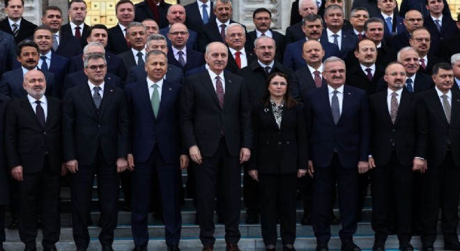 TBMM Başkanı Kurtulmuş, konuşmasının ardından İçişleri Bakanı Ali Yerlikaya ve valilerle fotoğraf çektirdi.