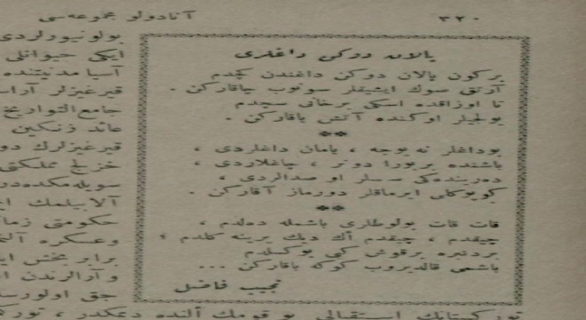 Necip Fazıl’ın “Palandöken Dağları” şiiri Mayıs 1925’te, derginin 9. Sayısında 320. sayfada yayımlandı. Necip Fazıl o yıllarda henüz daha 20 yaşındadır.