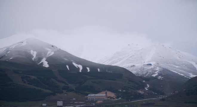 Erzurum'da Palandöken Dağı'nın yüksek kesimleri mayıs ayı olmasına rağmen beyaza büründü.