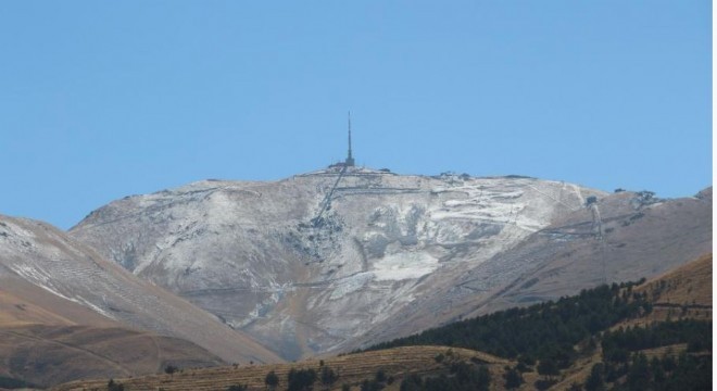 Erzurum’un en yüksek tepesi olan Ejder Tepesi'ne mevsimin ilk karı düştü.