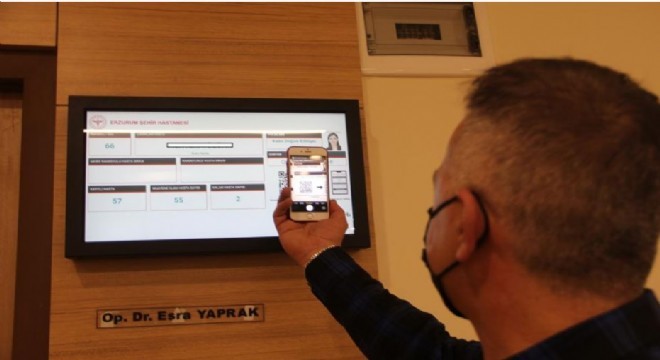Erzurum Şehir Hastanesinde korona virüs (Covid-19) nedeniyle başlatılan karekod uygulamasıyla artık hastalar poliklinik önünde sıra beklemeyecek. Uygulamayla sıra takibi telefondan yapılabilecek.