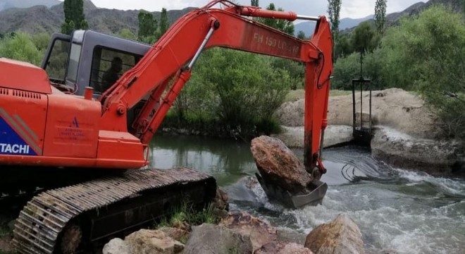 Şenkaya Belediyesi ekipleri tarım arazilerinin sulanması için su bentlerini sulama arklarını iş makinaları ile temizlemeye başladı.