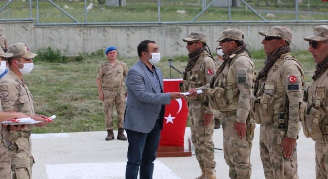 Törene katılan Şenkaya Kaymakamı Çağlar Tekin, “Terörle mücadelede aramıza katılan güvenlik korucularımızın yemin törenine katıldık. Rabbim ayaklarına taş değdirmesin” dedi.