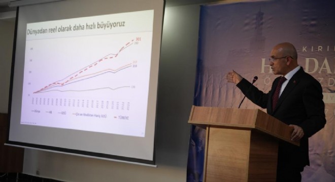Enerjide dönüşümün gerekliliğine dikkat çeken Şimşek, "Yenilenebilir enerji, yerel petrol ve doğalgaz kaynaklarının harekete geçirilmesiyle mevcut kaynakların etkin kullanılması enerjide dönüşüm için zarurettir. Yine teknoloji odaklı sanayi hamlesi var, bunun gibi bir sürü program var. Hedefimiz sanayide katma değeri yükseltmek, orta yüksek ve yüksek teknoloji bileşeni oranını yukarı çekmek. Bunun için de programımız var. Enerjide dönüşüm bizim için çok önemli. Son 21 yılda enerji ithalatına 905 milyar dolar ödemişiz. Türkiye’nin bu dönemdeki kümülatif toplam cari açığının 1.4 katı kadar enerji ithalatı yapmışız. Dolayısıyla yenilenebilir enerji, yerel petrol, doğalgaz kaynaklarının harekete geçirilmesi, mevcut kaynakların etkin kullanılması başta olmak üzere enerjide dönüşüm bizim için bir zarurettir" ifadelerini kullandı.