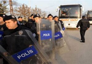 TEKEL işçilerinin otobüsleri Ankara girişlerinde polis tarafından durduruldu.