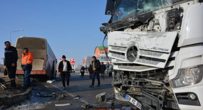 Aşkale’de dökme çimento tankeri ile yolcu otobüsünün çarpışması sonucu meydana gelen trafik kazasında araçlarda maddi hasar oluşurken, şans eseri yaralanan olmadı.