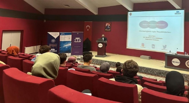 TOBB İl Genç Girişimciler Kurulu (GGK) Başkanı ve ETSO Meclis Üyesi İsmail Suci ile TOBB İl Kadın Girişimciler Kurulu (KGK) Başkanı Kübra Alioğulları, girişimcilik dersi alan İİBF öğrencileriyle iş hayatındaki tecrübelerini paylaştı.