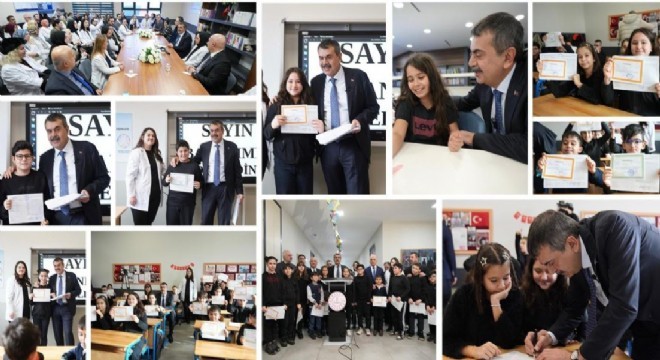 Halkbank Ortaokulunun açılışını gerçekleştiren Bakan Tekin, açılış töreninin ardından, sınıflara geçerek öğrencilere karnelerini verdi.