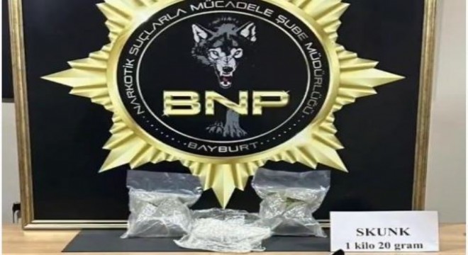 Bayburt İl Emniyet Müdürlüğü Narkotik Suçlarla Mücadele Şube Müdürlüğü ekiplerince Bayburt-Erzurum karayolunda durdurulan otobüste yapılan aramada 1 kilo 20 gram skunk ele geçirildi. Olayla ilgili bir kişi tutuklandı.