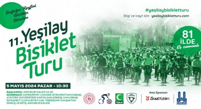 Türkiye'nin en büyük bisiklet organizasyonlarından biri olan ve Ziraat Katılım, Kahve Dünyası, Bisan ve Türkiye Sigorta’nın katkılarıyla düzenlenen Geleneksel Yeşilay Bisiklet Turu'nun 11’incisi, 5 Mayıs Pazar günü yapılacak. Yeşilay şubeleri, Yeşilay Spor Kulüpleri, gönüllüler ve bisiklet severlerin katılımıyla 81 ilde eş zamanlı yapılacak etkinlik, Erzurum’da Erzurum Kalesi'nden başlayıp güzergâh üzerindeki caddelerden geçilerek başlangıç noktasında sona erecek. “Sağlıklı yaşamın keyfini birlikte sürelim” sloganıyla düzenlenen tur, diğer illerde de şehrin önemli merkezlerinden geçerek Türkiye genelindeki bisiklet severleri bir araya getirecek.