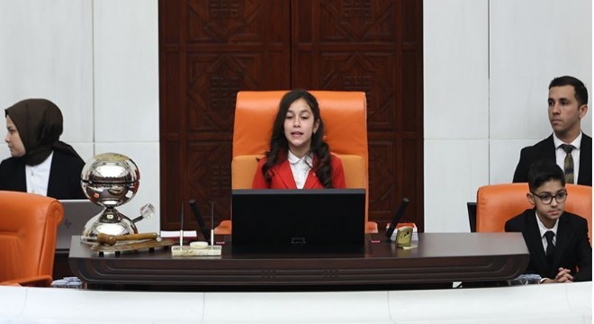 23 Nisan Ulusal Egemenlik ve Çocuk Bayramı dolayısıyla düzenlenen TBMM çocuk özel oturumunu, 6. sınıf öğrencisi Aysima Arslan yönetti.