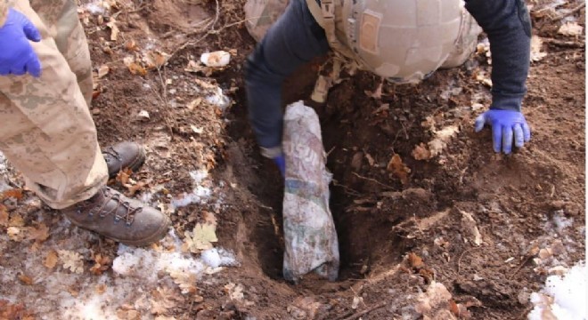 Bitlis'in Tatvan kırsalında terör örgütünce toprağa gizlenmiş çok miktarda ...
