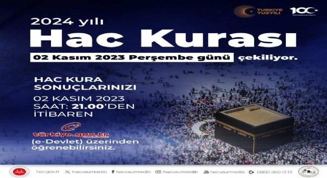 Diyanet İşleri Başkanı Erbaş sosyal medya hesabı üzerinden 2024 yılı Hac Kurası’nın çekileceği tarihin belli olduğunu bildirdi. Hac kura sonuçlarının 2 Kasım saat 21.00 itibari ile e-devlet üzerinden vatandaşların öğrenebileceğini aktaran Erbaş, “Milyonlarca kardeşimizin hasretle beklediği 2024 Hac kurasını 2 Kasım Perşembe günü Diyanet İşleri Başkanlığımızda gerçekleştireceğiz. Yüce Rabbimiz bu kutlu yolculuğa duyduğumuz özlemi, sevgiyi, muhabbeti gönlümüzden eksik eylemesin” dedi.