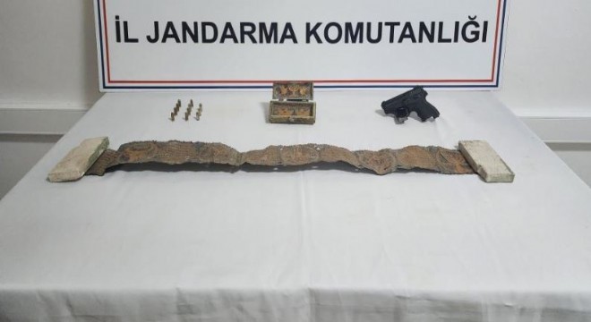 Malatya İl Jandarma Komutanlığı ekipleri, Şanlıurfa’dan kente tarihi eser niteliği taşıyan bazı materyallerin getirilerek satışa sunulacağı bilgisine ulaştı. Bunun üzerine harekete geçen ekipler yapılan teknik ve fiziki takiplerin ardından Yazıhan ilçesinde durdurulan bir araçta arama yaptı. Yapılan aramalarda özel yapım tarihi değeri bulunan ahşap sandık içerisinde Mısırlılara ait 3 bin 500 yıllık olduğu değerlendirilen ceylan derisi üzerine altın varak işlemeli İbranice yazılı parşömen, 1 adet ruhsatsız tabanca ile 11 adet tabanca fişeği ele geçirildi.