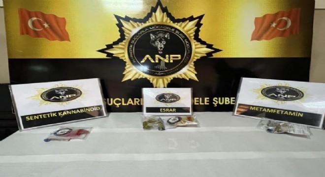 “9 Şüpheli şahıs hakkında uyuşturucu veya uyarıcı madde ticareti yaptığı yönünde bilgi ve delil elde edilmesi üzerine yürütülen soruşturma kapsamında 14 şüpheli şahsa TCK-191 maddesi kapsamında uyuşturucu veya uyarıcı madde kullanmak suçundan adli işlem başlatılmış ve yapılan ara yakalamalar kapsamında; 1 kilo 72 gram Sentetik Kannabinoid (Bonzai), 5 kilo 77 gram Esrar, 17 kilo 44 Gram Metamfetamin, 3 adet uyuşturucu madde içiminde kullanılan cam aparat ele geçirilmiştir.